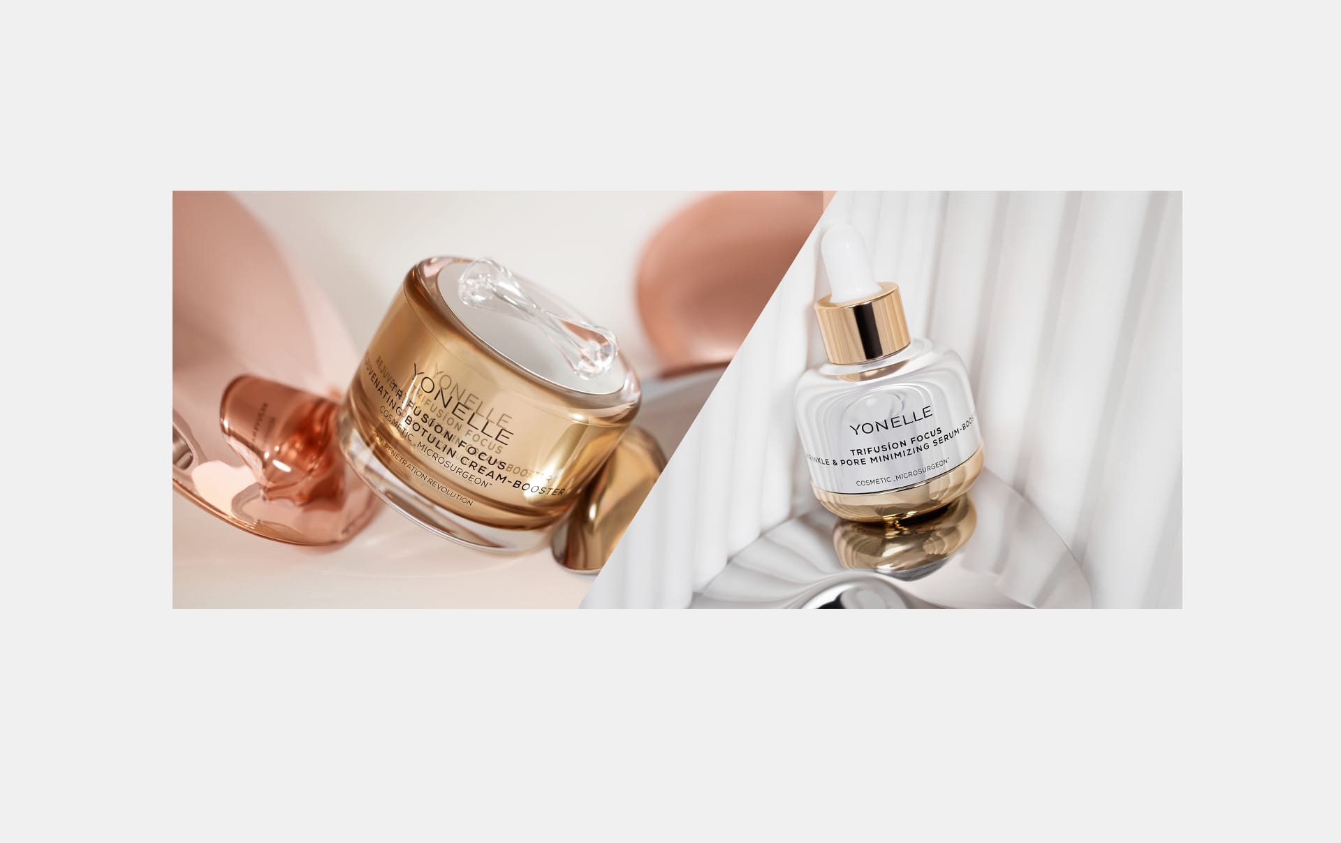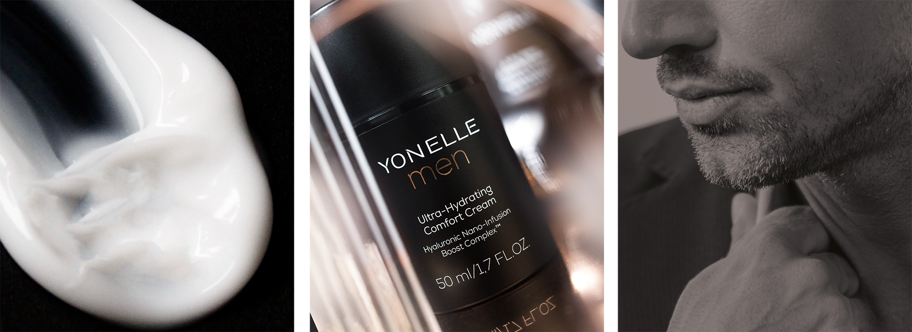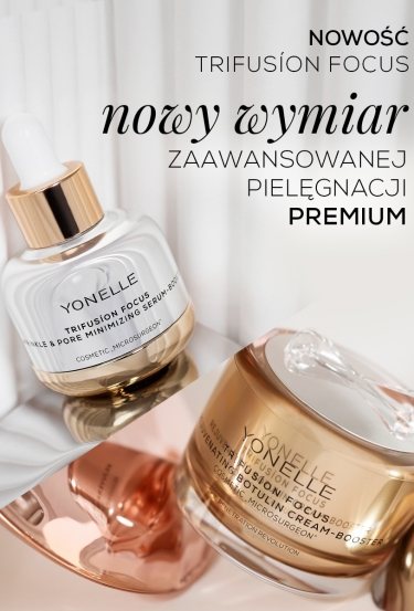 dowiedz się więcej skóra wygląda na młodszą nawet o 5 lat* *po 6 tyg. stosowania TRFUSÍON FOCUS Odmładzający Botulinowy Krem-Booster dwa razy dziennie”  TRIFUSÍON FOCUS POZNAJ SERIĘ YONELLE MEN NOWA SERIA KOSMETYKÓW INFUZYJNYCH KLASY PREMIUM DLA MĘŻCZYZN Twoja skóra, Twoja siła YONELLE MEN