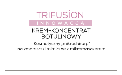 az ún. szarkalábakat. TRIFUSÍON Krém nagy intenzitású hatással a szem körüli és a száj feletti ráncok csökkentésére. Azonnali hűsítő frissességet és rugalmasságjavító hatást nyújt.