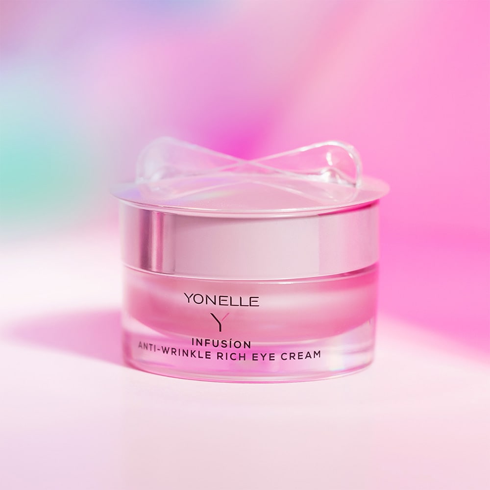 Doskonałym uzupełnieniem naszego bestsellerowego kremu do twarzy jest krem specjalnie dedykowany okolicy oczu z retinolem w Nanodyskach™ oraz peptydami mającymi zdolność do zagęszczania skóry i poprawy jej jędrności. Bogata kompozycja kremu, pozbawiona zapachu, nadaje idealną miękkość oraz przywraca komfort skórze suchej, zapewniając przy tym odżywienie oraz ponadprzeciętne efekty spłycania zmarszczek. Idealnie sprawdza się pod makijaż, pozostawiając skórę nawilżoną oraz wygładzoną. To rekomendacja moja oraz klientek YONELLE!