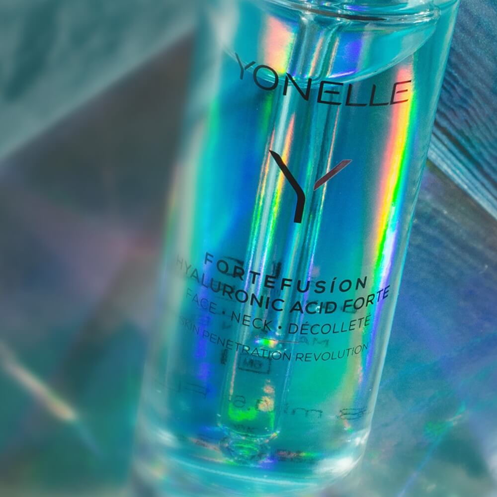 Kwas Hialuronowy Forte to „bank wody”, z którego skóra zawsze może czerpać jej tyle, ile potrzebuje. Składa się z aktywnych form kwasu hialuronowego, tworzących trójwymiarową gąbkę molekularną. Umieszczono w niej nowatorską biomolekułę, która wychwytuje i wiąże nawet 5000 cząsteczek wody*, dając rekordową siłę nawilżania.