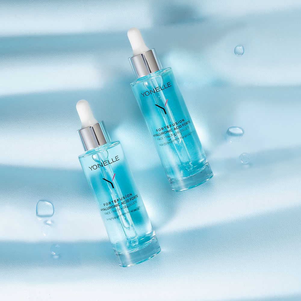 KWAS HIALURONOWY FORTE na twarz, szyję i dekolt. Działa jak bomba supernawilżająca. Wzmacnia działanie nawilżające kremów pielęgnacyjnych. Może być stosowany pod krem, ale także jako samodzielny kosmetyk nawilżający.