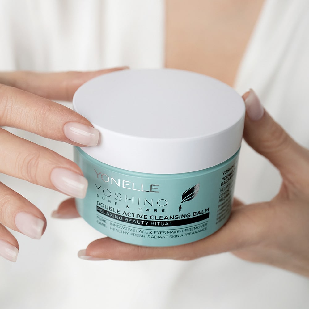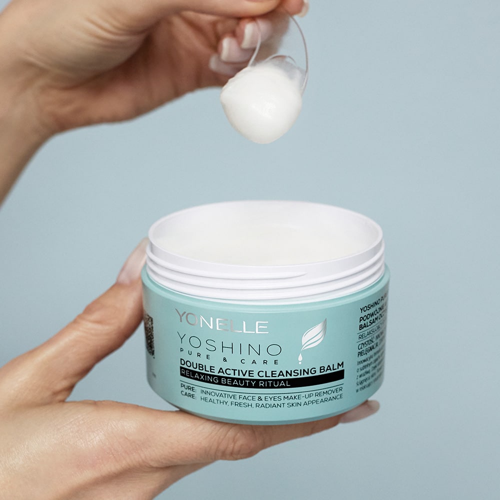YOSHINO PURE & CARE Podwójnie Aktywny Balsam Oczyszczający to nowoczesny kosmetyk do demakijażu, wykorzystujący innowacyjną formułę 2 w 1. Dzięki niemu doświadczysz Relaksującego Rytuału Piękna, który nie tylko skuteczne oczyszcza skórę, ale również pobudza procesy jej odnowy. Skóra jest przygotowana do kolejnych kroków pielęgnacyjnych, co pozwala na pełne wykorzystanie potencjału stosowanych kosmetyków.