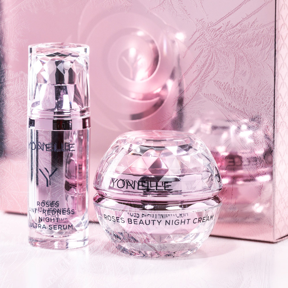 • ZESTAW ROSES Upiększający Rytuał Na Noc zawiera dwa innowacyjne kosmetyki, które zapewnią skórze nocną odnowę: